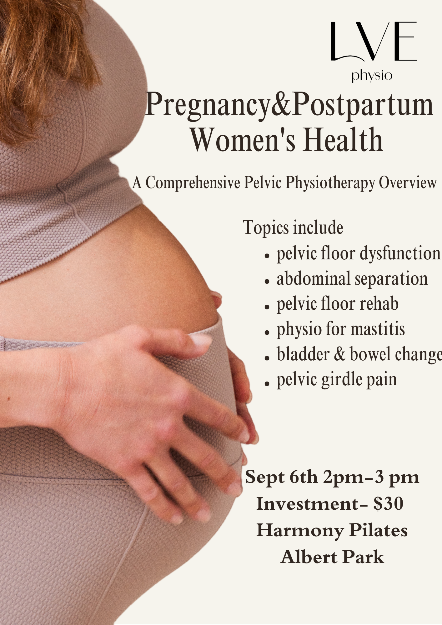 We’ll cover key women’s health physiotherapy concerns throughout pregnancy, including pelvic girdle pain, bladder and bowel changes, and evidence-based exercise guidelines.